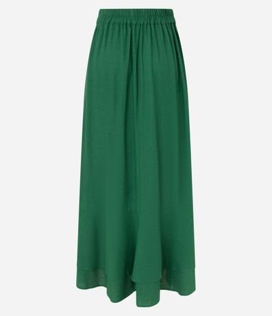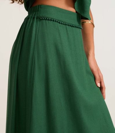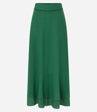 Saia Long Midi em Viscolinho com Miçangas no Cós e Babado Duplo