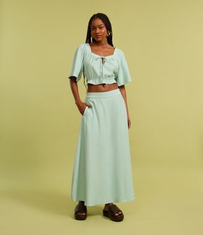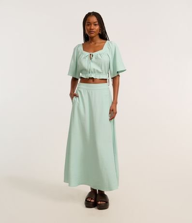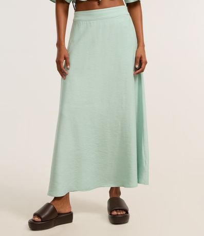 Ref: Saia long midi, evasê com elástico no cós, confeccionada em viscose mas sustentável, pregas e bolsos laterais.