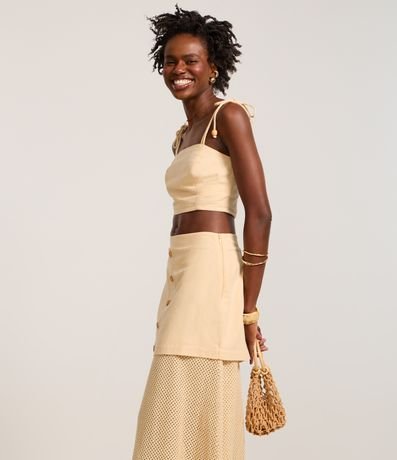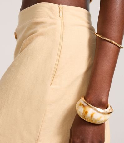 O viscolinho é uma mistura de linho e viscose. O material proporciona toque macio, caimento fluido e um visual sofisticado à peça. Além disso, traz conforto e leveza ao look, perfeito para os dias atuais.