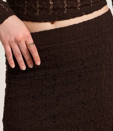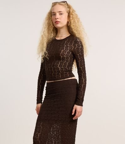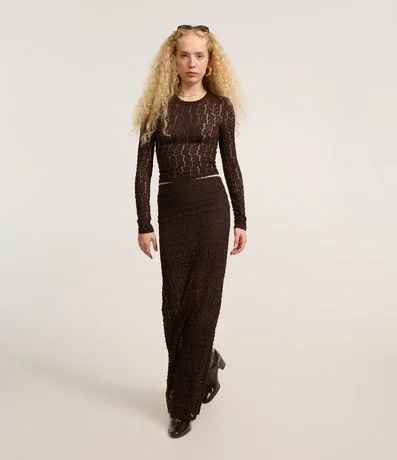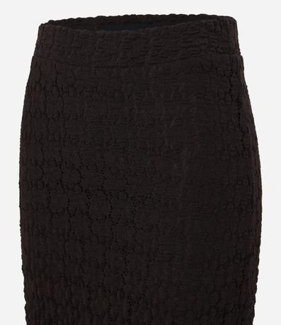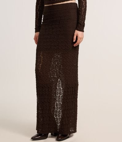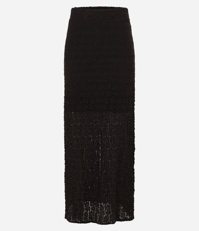 Ref: Saia long midi, reta com cós elástico, confeccionada em poliamida texturizada, forro curto e com fenda na parte de trás.