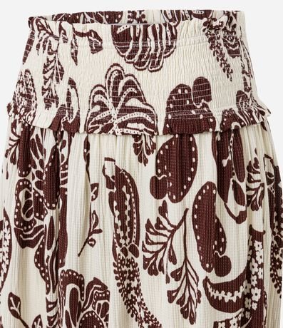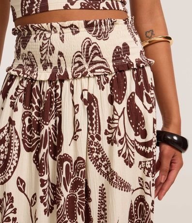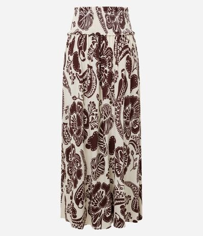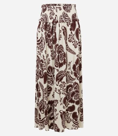 Ref: Saia long midi confeccionada em tecido texturizado e estampado bicolor. A peça tem cós largo de lastex.