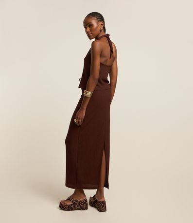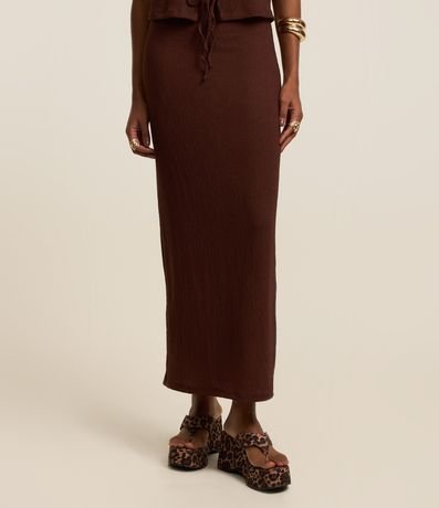 Ref: Saia long midi com cós elástico, textura e sem estampa.