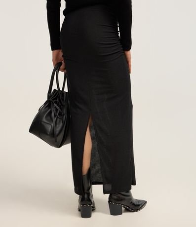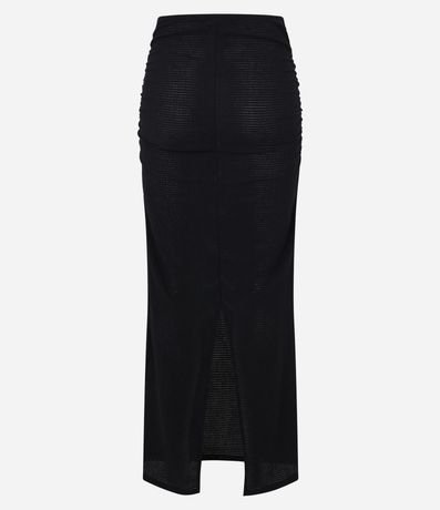 Ref: Saia long midi, reta com cós elástico, texturizada confeccionada em boas práticas ambientais e franzidinho na lateral.