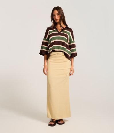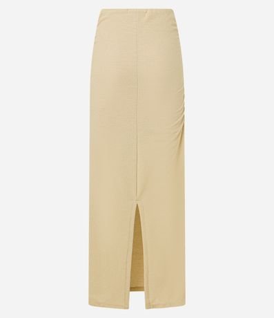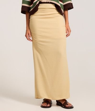 Ref: Saia long midi com cós elástico, texturizada com franzidinhos na lateral e fenda na parte de trás.