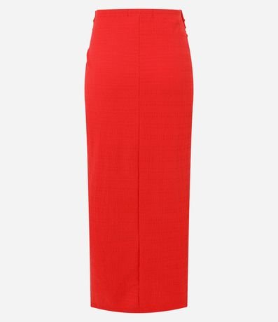 Ref: Saia long midi confeccionada em tecido texturizado e sem estampa. A peça possui efeito de torcido frontal.