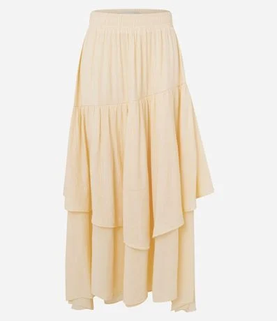 Saia Longa Assimétrica em Viscose Texturizada com Camadas