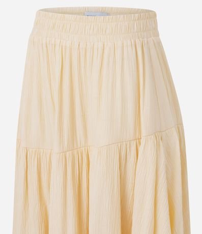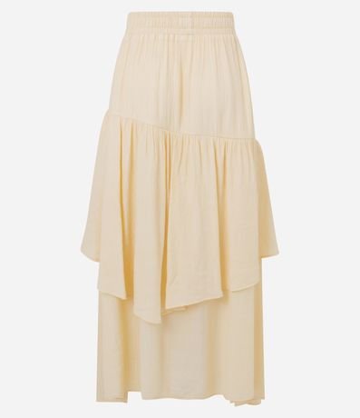 Saia longa confeccionada em viscose texturizada, com recortes assimétricos e camadas que criam movimento elegante. Possui cós com elástico para mais conforto e caimento fluido, ideal para compor produções modernas com leveza. Peça confeccionada em viscose certificada.