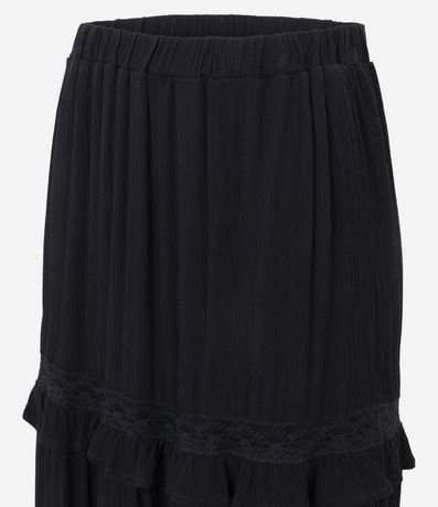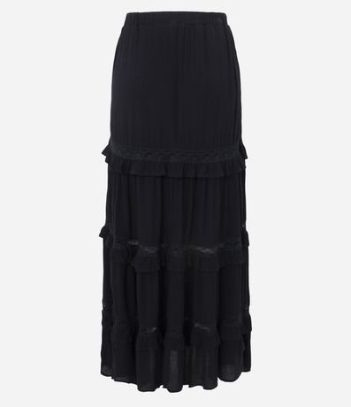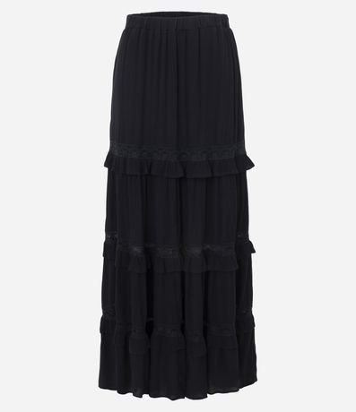 Ref: Saia longa em chalis de viscose com efeito crinkle e camadas de babados, trazendo movimento e leveza ao look. Possui cós elástico e detalhes delicados que valorizam o caimento. Perfeita para compor produções fluidas, confortáveis e cheias de estilo no dia a dia.
