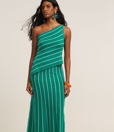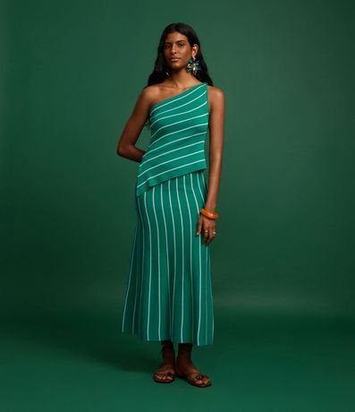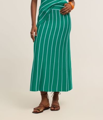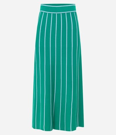Ref: Saia feminina de modelo longo, confeccionada em tricô de material mais sustentável. Possui cós largo com elástico e estampa listrada.