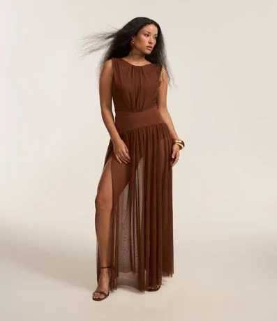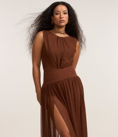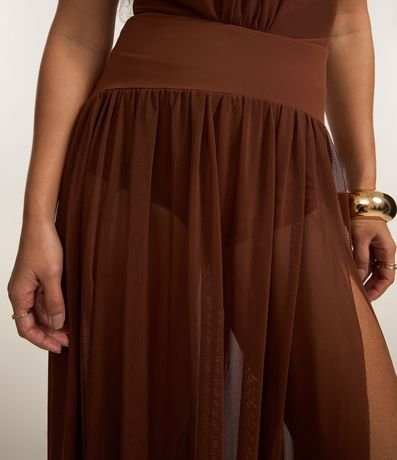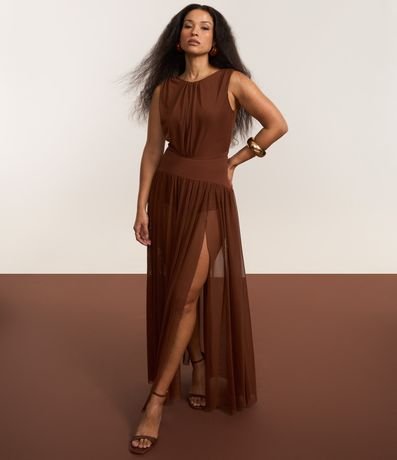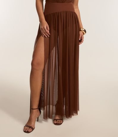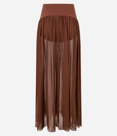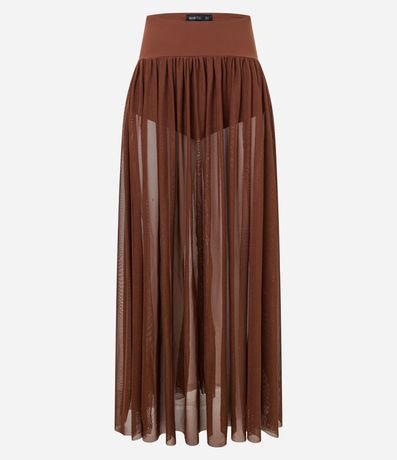 Saia longa de tule com cós pala largo.