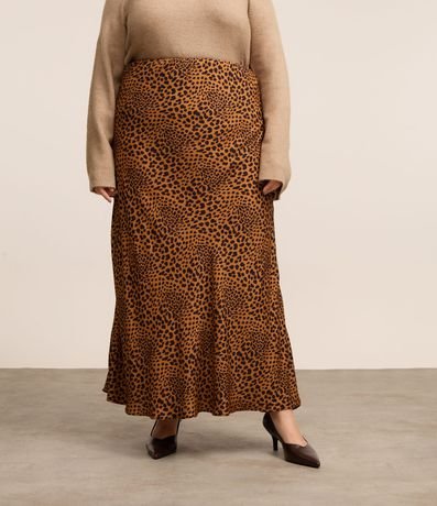 Ref: Saia feminina Curve & Plus Size, confeccionada em viscose mais sustentável com boas práticas ambientais. Peça longa com estampa de animal print oncinha.