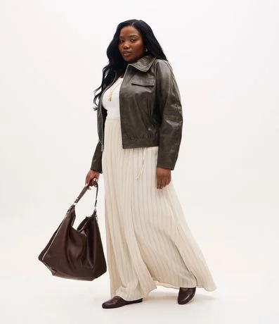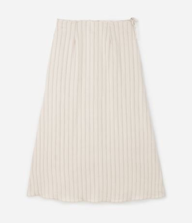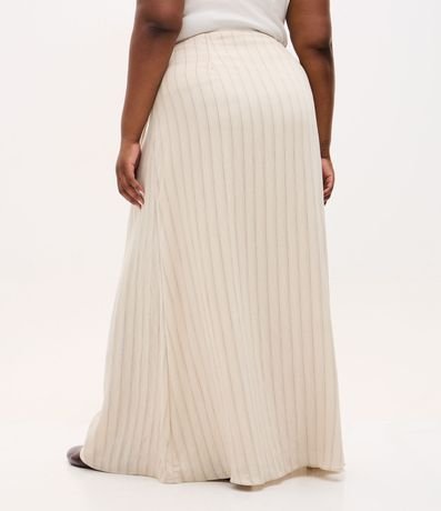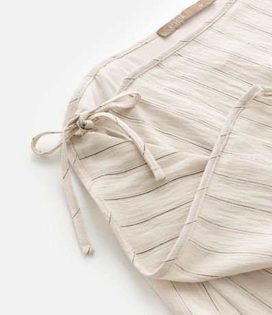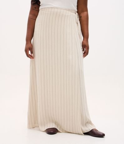 Ref: Saia plus size de modelo envelope, com comprimento longo e confeccionada em viscose chalis. Possui padronagem de listras e amarrações: interna e na lateral.