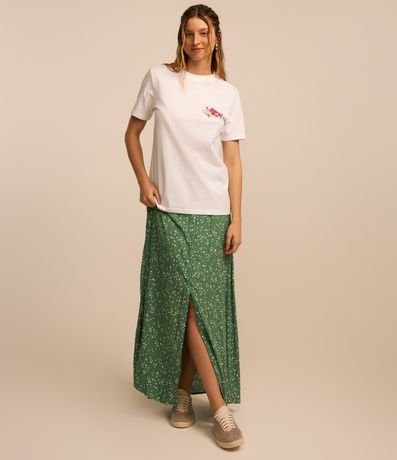 Ref: Saia longa confeccionada em viscose, abotoamento frontal e estampa floral liberty.