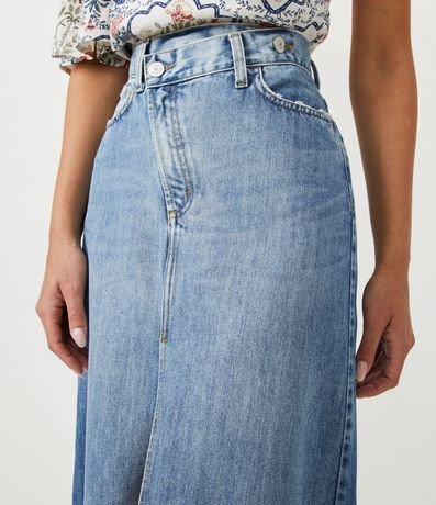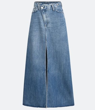 Ref: Saia longa jeans, com transpasse no cós e fechamento deslocado. Sua fenda frontal e desgastes próximo à barra, garantem um visual descolado e cheio de estilo. Versátil, o modelo combina muito bem com diversas partes de cima. Aposte com tênis, para looks mais confortáveis e botas de salto alto para looks mais elegantes!