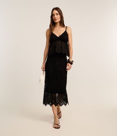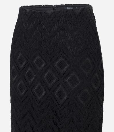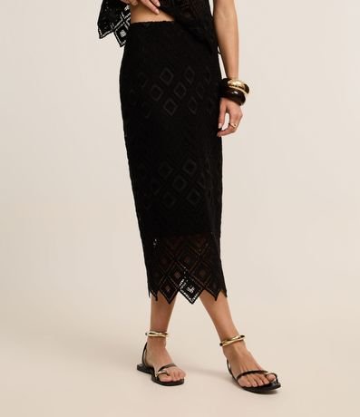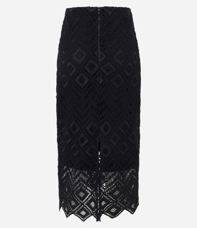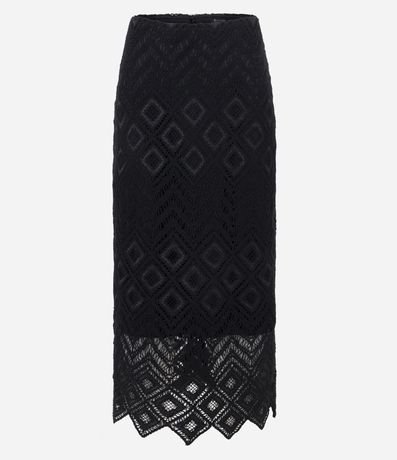 Ref: Saia longa, reta com fechamento por zíper na lateral, forro interno médio e dtalhe em ponto vazado na barra.