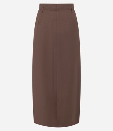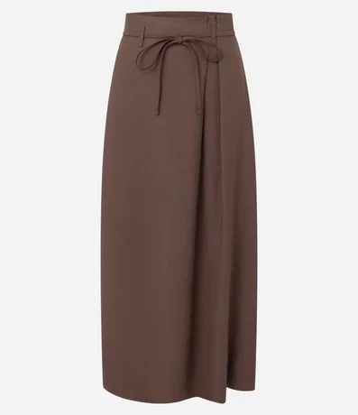 Ref: Saia midi feminina de alfaiataria confeccionada em viscose mais sustentável. Possui cós estruturado, passantes e amarração frontal em cordão. Ideal para compor looks casuais para o dia.