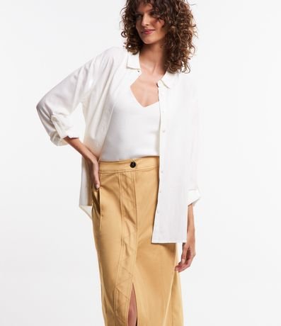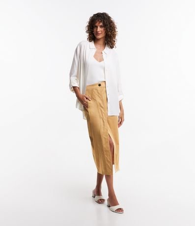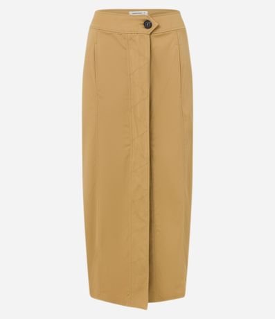 Saia Midi Alfaiatada com Fechamento Frontal e Recortes