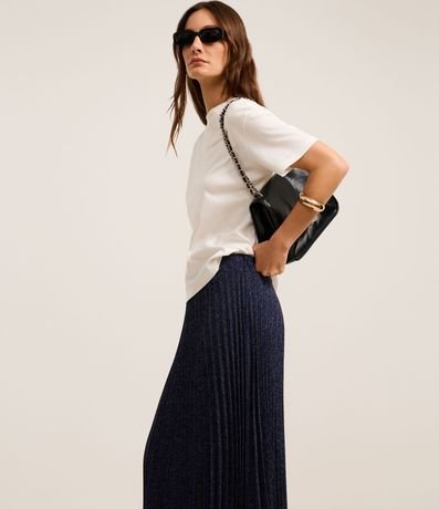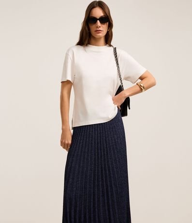 Ref: Saia evasê com comprimento midi, com corte alfaiatado, confeccionada em tecido plano.