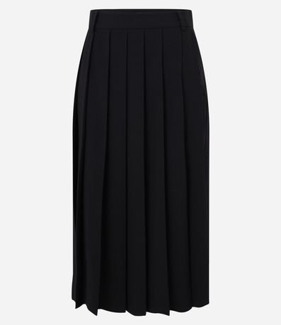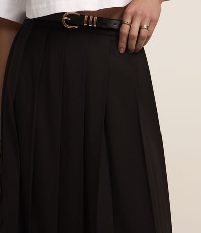 Saia Midi Alfaiatada e Plissada com Passantes no Cós