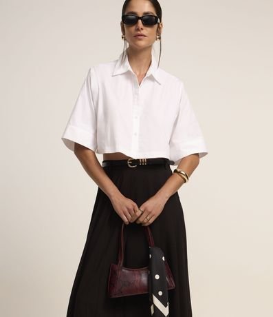 Saia midi alfaiatada, com comprimento plissado e passantes no cós.