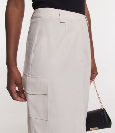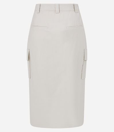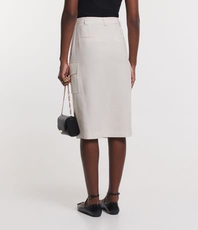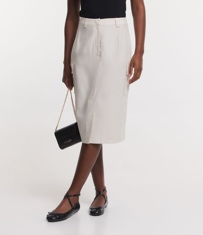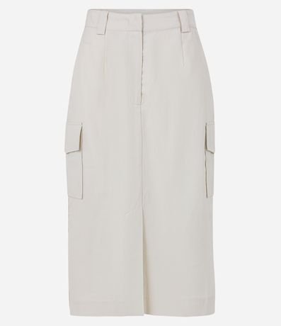 Ref: Saia midi em viscose, com fechamento frontal, bolsos laterais e fenda.