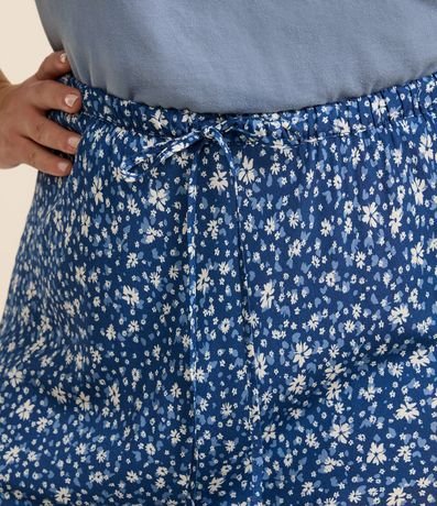 Saia feminina Curve & Plus Size confeccionada em viscose mais sustentável com boas práticas ambientais, peça no modelo midi com cós elástico, cordinha para ajustes e estampa delicada floral.