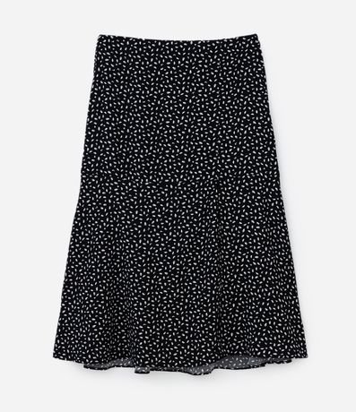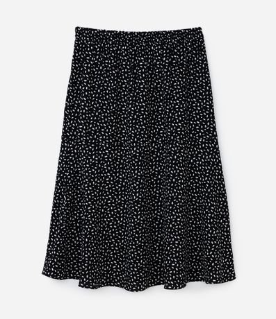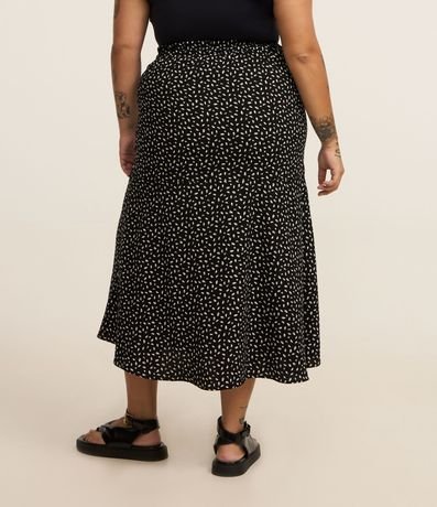 Ref: Saia feminina Curve & Plus Size confeccionada em crepe com boas práticas ambientais, cós elástico, fenda frontal com estampa poá.