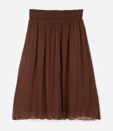 Ref: Saia feminina confeccionada em crepe, no modelo midi. Possui cós de lastex, com cordão, detalhe de tassel, plissada e sem estampa.