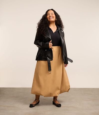 Ref: Saia feminina Curve & Plus Size em Alfaiataria balonê com cós elástico. Peça no modelo midi transforma qualquer ocasião em um evento.