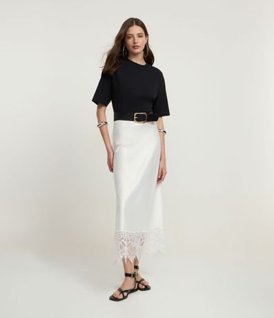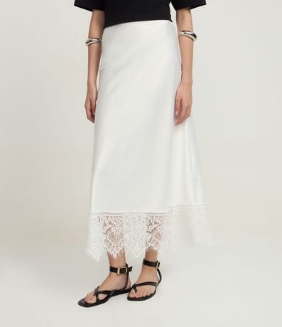 Ref: Saia feminina confeccionada em cetim através de boas práticas ambientais, no modelo midi. Possui barra com renda delicada, garantindo elegância e sofisticação. Ideal para compor looks clássicos ou modernos, perfeita para ocasiões especiais com charme e leveza.