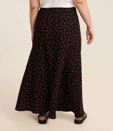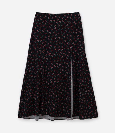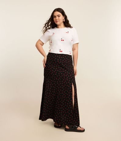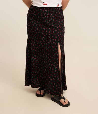 Saia Midi em Crepe com Cerejinhas e Fenda Curve & Plus Size