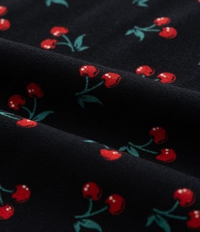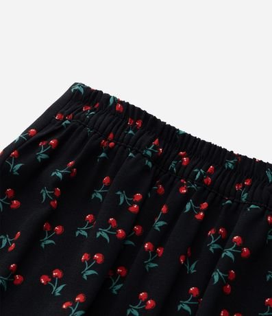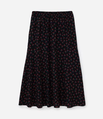 Saia feminina Curve & Plus Size confeccionada em crepe, peça no modelo midi, cós com elástico, com fenda e estampa de cerejinhas.