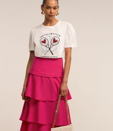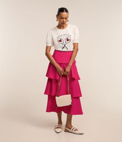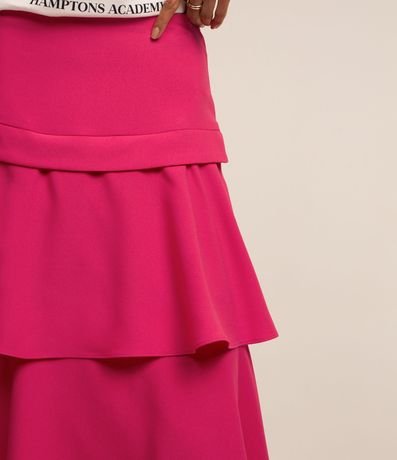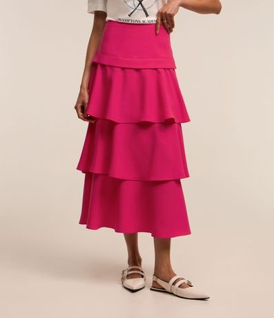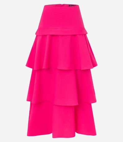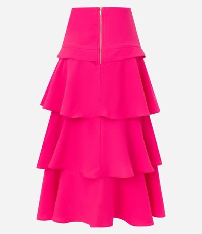 Ref: Saia midi feminina, confeccionada em crepe, com zíper nas costas e camadas de babados.
