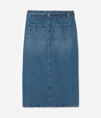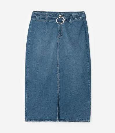 Saia Midi em Jeans com Fenda e Cinto com Fivela Curve & Plus Size