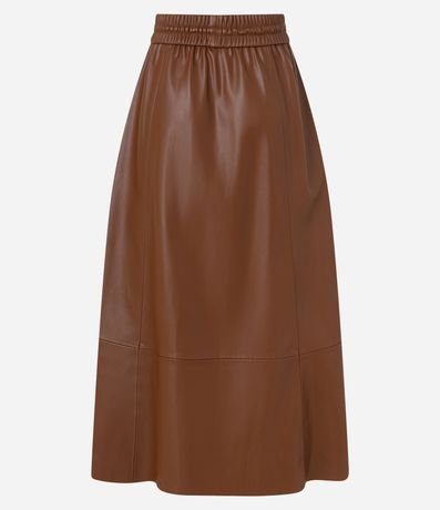 Ref: Saia feminina confeccionada em pu no modelo midi, com cós elástico, cordão, bolsos e detalhe em recortes.