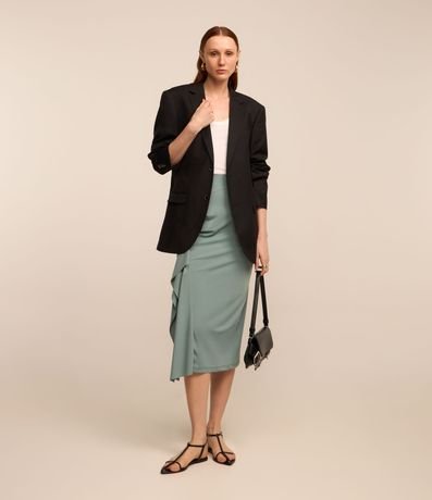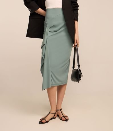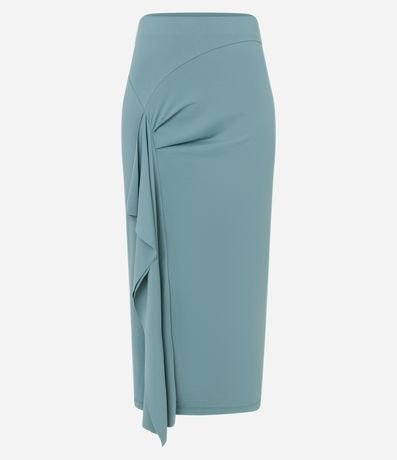 Ref: Saia midi feminina, confeccionada em poliamida, com detalhe drapeado lateral e ponta.