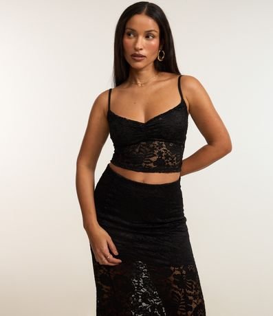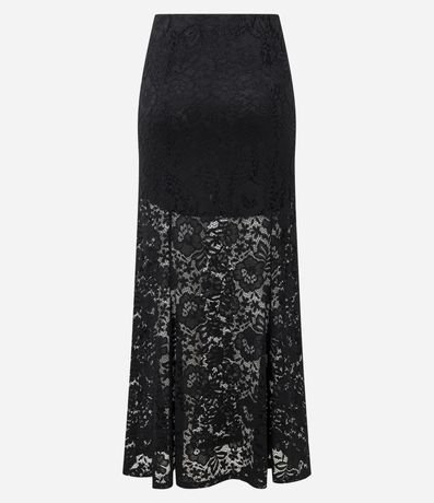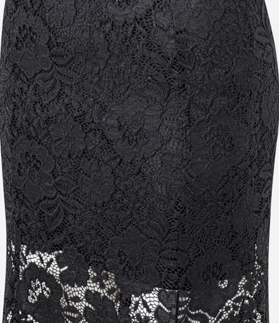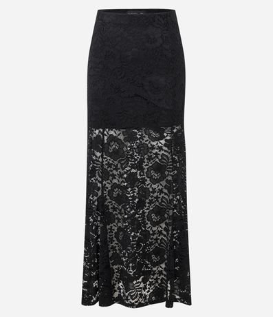 Ref: Saia feminina confeccionada em renda floral no modelo midi, com cós elástico e barra godê.