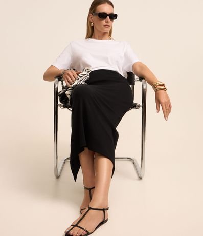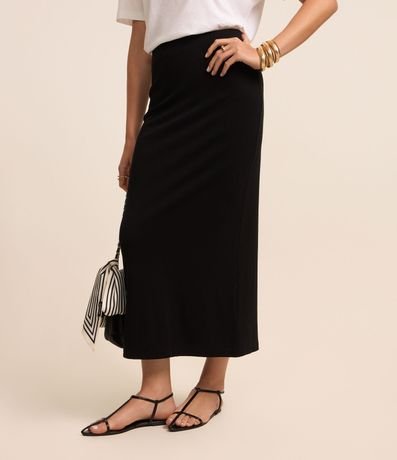 Ref: Saia midi feminina, confeccionada em ribana, com cós elástico e textura canelada.