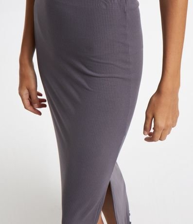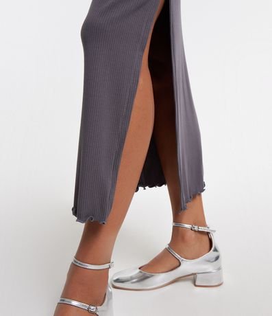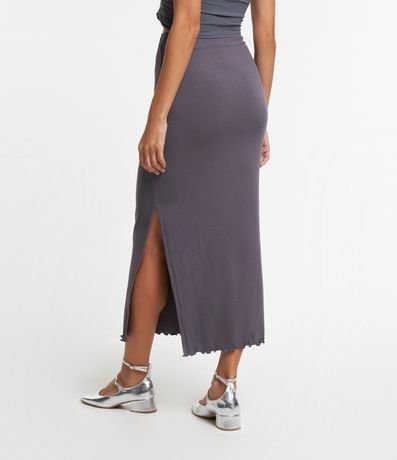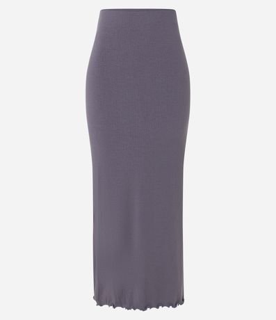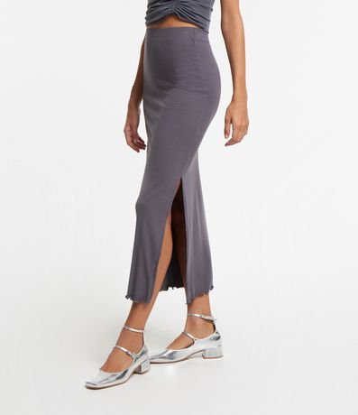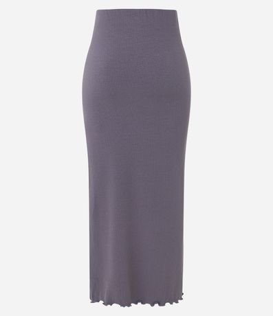 Saia midi, em ribana, sem estampa com fenda lateral e barra picot.