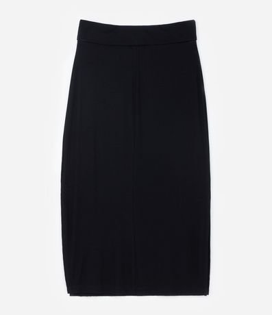 Saia feminina Curve & Plus Size confeccionada em ribana com boas práticas sustentáveis, peça no modelo midi com cós dobrado e fenda lateral.