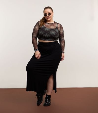 Saia Midi em Ribana com Fenda Lateral Curve & Plus Size