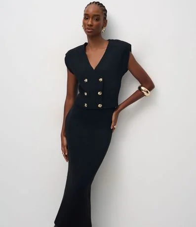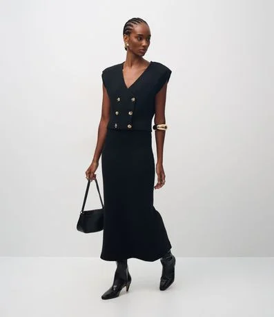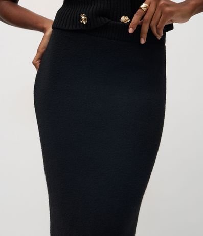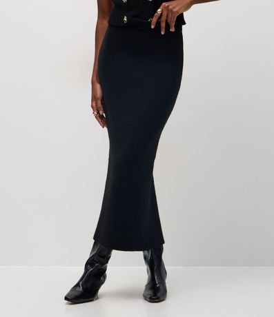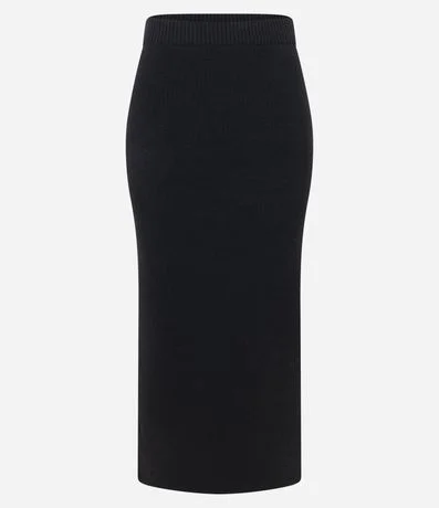 Ref: Saia midi feminina confeccionada em tricô. Possui modelagem ajustada ao corpo, cós estruturado e fenda traseira trazendo movimento a peça.