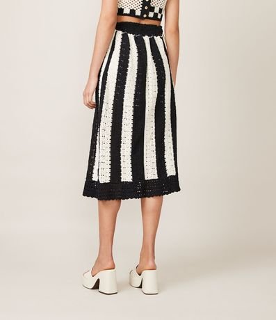 Saia Midi em Tricô com Listras e Pontos Crochetados