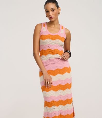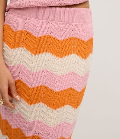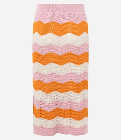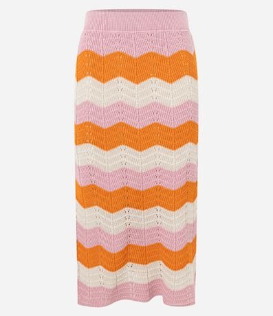 Ref: Saia midi, confeccionada em tricô, com elástico no cós e listras horizontais em zigue-zague. Este produto possui material mais sustentável em sua composição, além de ter sido produzido através de processos mais sustentáveis, sendo ambientalmente mais responsável.