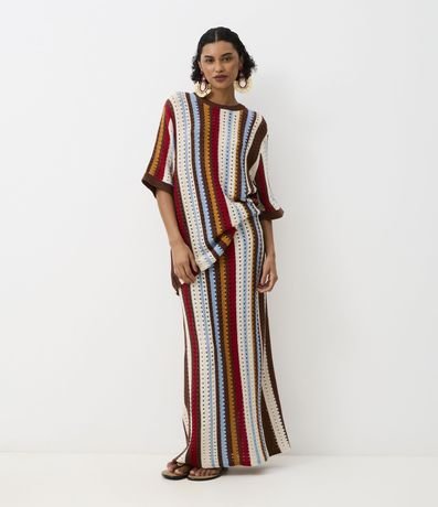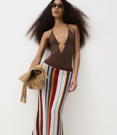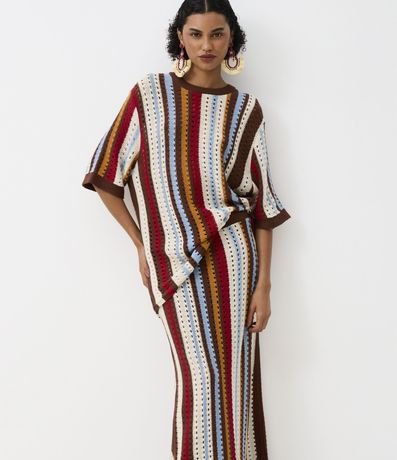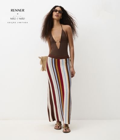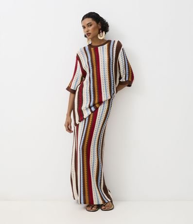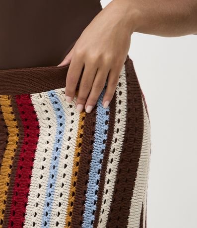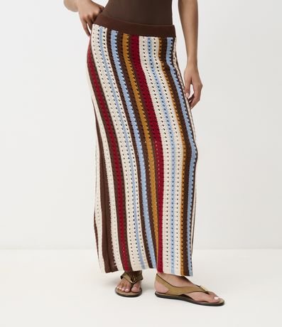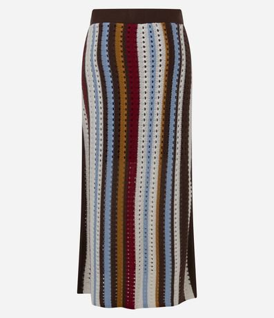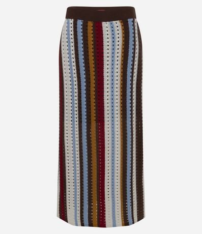 Ref: Saia midi, confeccionada em tricô, com elástico no cós, listras verticais com espessuras e cores variadas. Peça com forro. Esta peça faz parte da collab Ateliê Mão de Mãe.