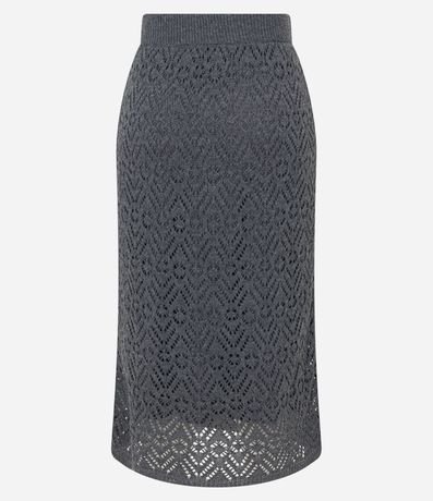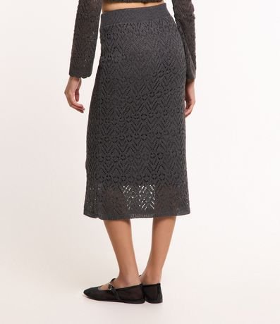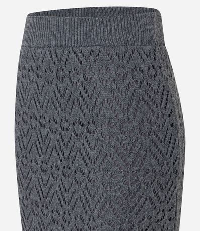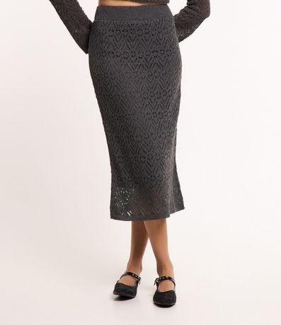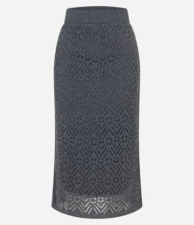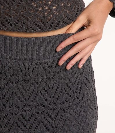 Ref: Saia midi, em tricô com ponto crochetado, cós caneladinho e elástico, com forro.