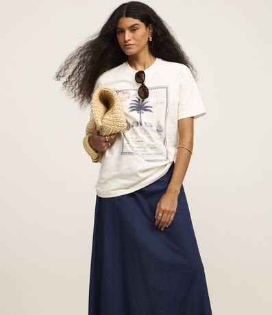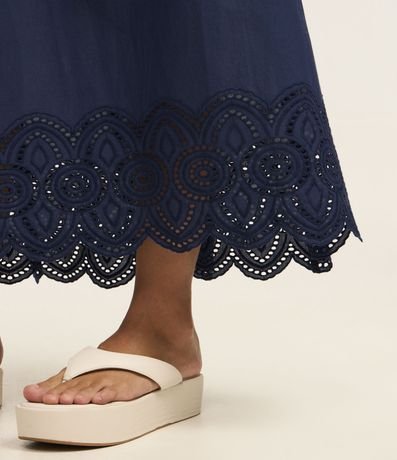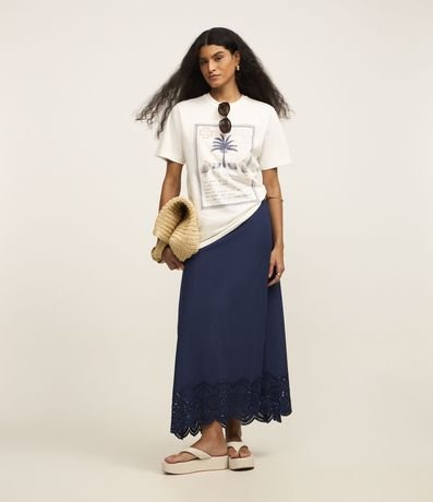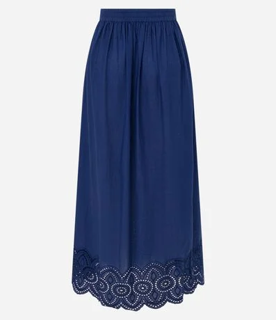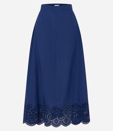 Ref: Saia midi em tricoline com detalhe em richelieu na barra. Peça acinturada e confecciona com algodão mais sustentável.