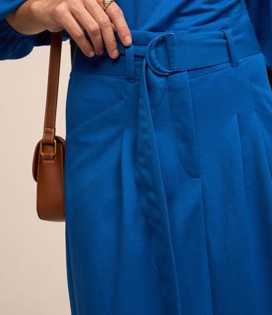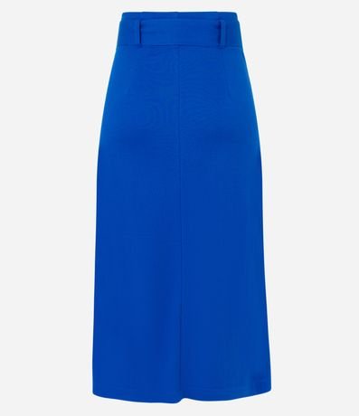 Ref: Saia midi feminina, confeccionada em malha de viscose, com cinto fivela e pregas frontais.