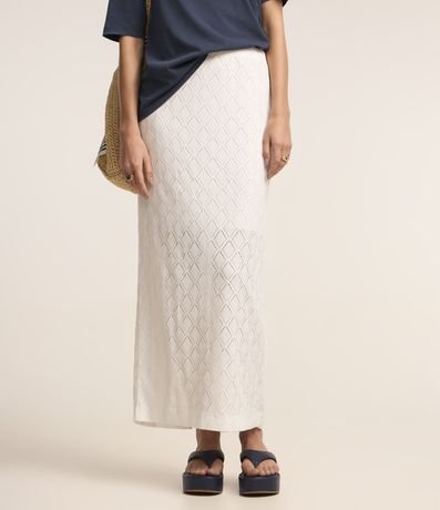 Ref: Saia midi feminina evase de renda com fenda.