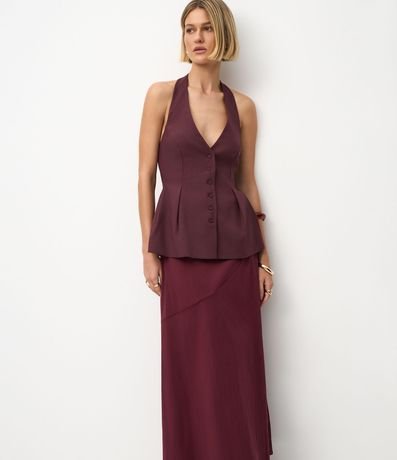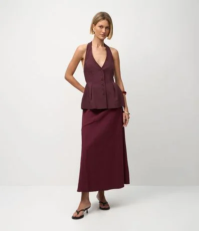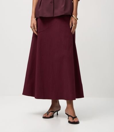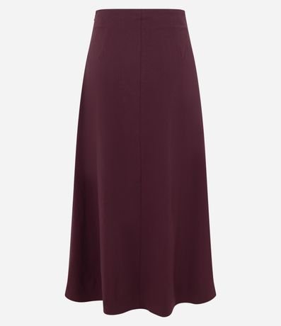 Ref: Saia feminina midi evasê confeccionada em bengaline, com recorte frontal horizontal que adiciona charme ao design. Modelagem fluida e comprimento abaixo do joelho para um visual elegante e versátil. Peça confeccionada em algodão de certificado BCI, garantindo processo mais sustentável.